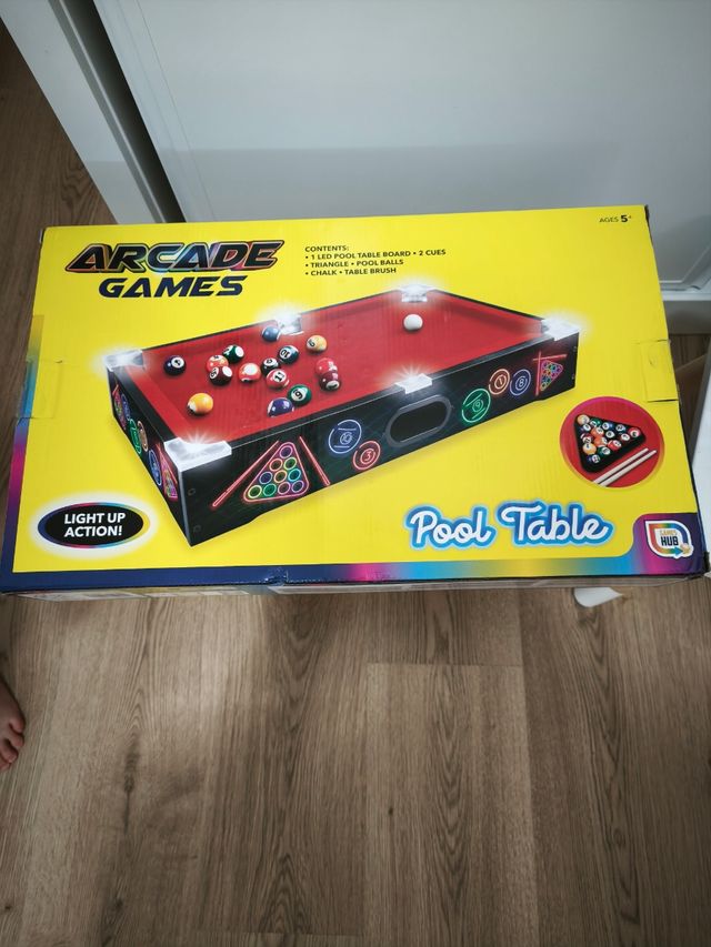 Dettagli del prodottoMini tavolo da biliardo del marchio Arcade Games, ideale per ore di divertimento.