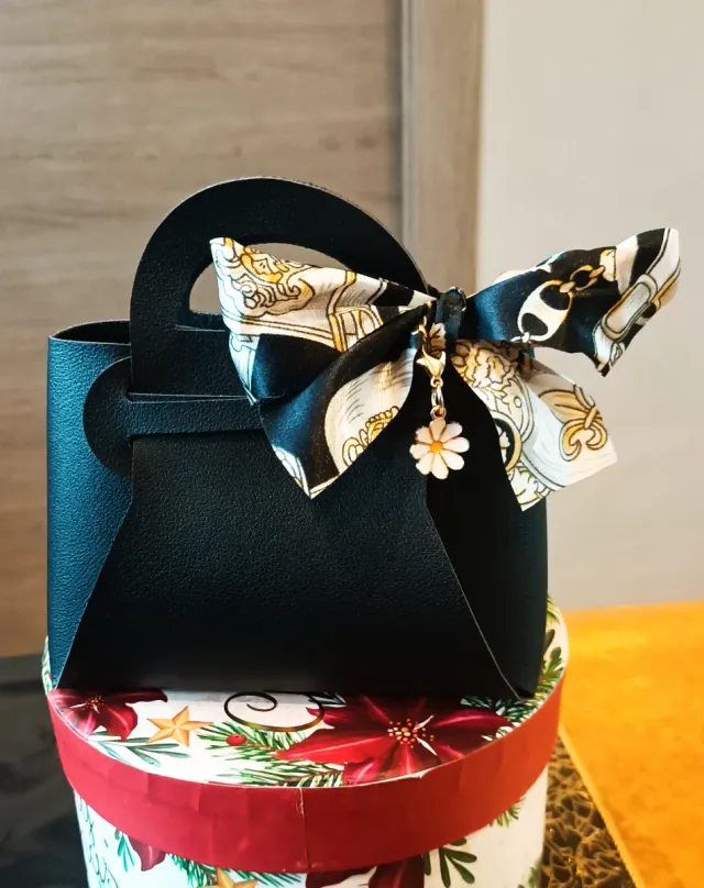 Mini Borsetta Nera Fiocco e Ciondolo/Portachiavi