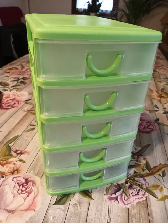 Mini cassettiera 5 cassetti color verde e grigio