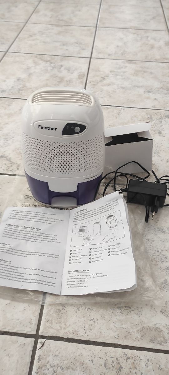 Dettagli del prodottoMini deumidificatore 500 ml. Ideale per stanze, uffici, garage e piccoli ambienti. Silenzioso. Usato pochissimo, come nuovo, completo di manuale in italiano e alimentatore originale. Misure del prodotto