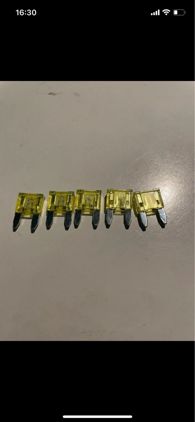 Set di 5 mini fusibili da 20A. Sono nuovi e di colore giallo. Perfetti per auto o altri dispositivi. - 5 pezzi inclusi - Colore giallo - Nuovi