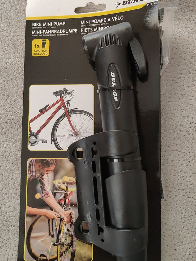 Mini pompa per bici con un adattatore ancora incartata. nuova mai usata