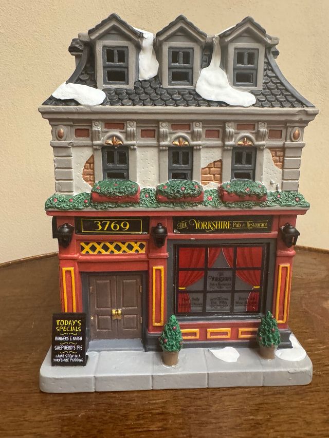 Dettagli del prodottoBellissimo mini pub Lemax del villaggio di Natale, raffigurante il locale "The Yorkshire Pub & Restaurant". solo tempex RITIRATO
