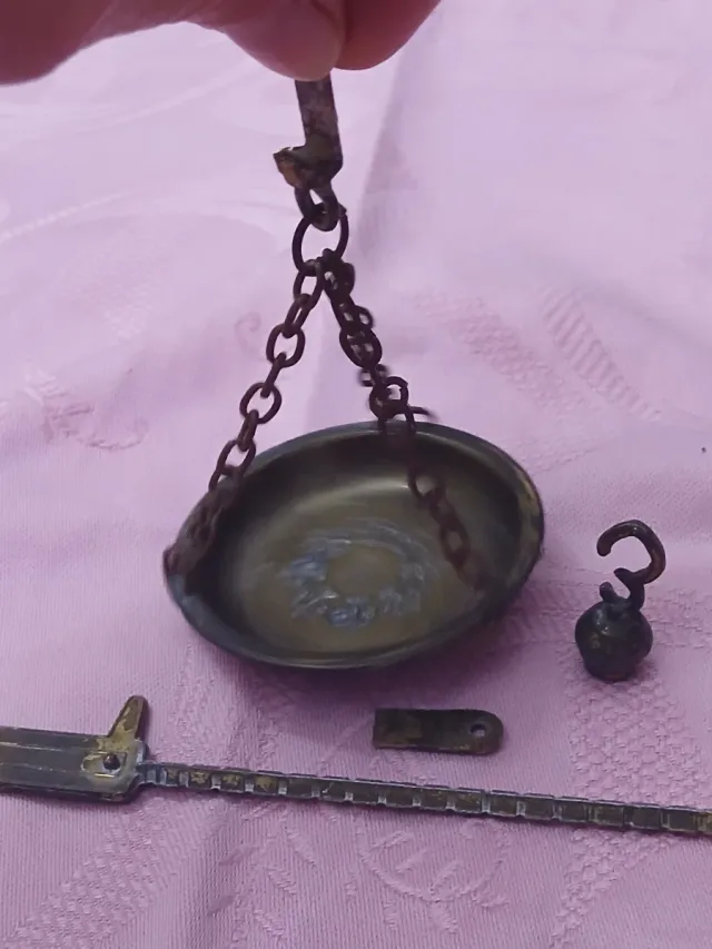 Dettagli del prodottoMini stadera antica, ideale per collezionisti o per progetti di restauro. Presenta segni del tempo che ne attestano l'autenticità.In ottone.