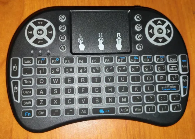 Mini tastiera Rii con touchpad integrato, ideale per il controllo di smart TV, PC e altri dispositivi.