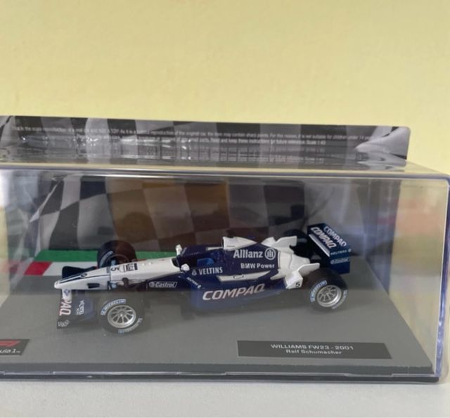 Dettagli del prodottoBellissima miniatura da collezione della Williams FW23, numero 5, guidata da Ralf Schumacher nel 2001. La vettura è in ottime condizioni ed è esposta in una teca protettiva.