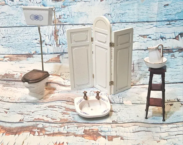 Dettagli del prodottoSet da bagno con casa delle bambole in miniatura Include diversi elementi per ricreare uno spazio.