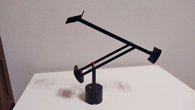Dettagli del prodottoRiproduzione in miniatura della lampada da scrivania Tizio di Artemide , in metallo, colore nero , a led funzionante a batterie , estensione massima 35 cm Misure del prodotto