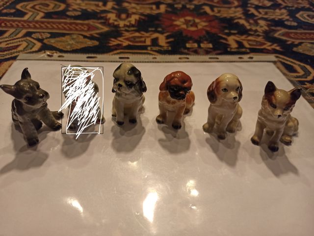 Dettagli del prodottoCani in porcellana bone china e gatto in porcellana inglese. In vendita a 10 euro l'uno. Altezza 4 cm circa. prezzo trattabile per acquisti multipli Misure del prodotto