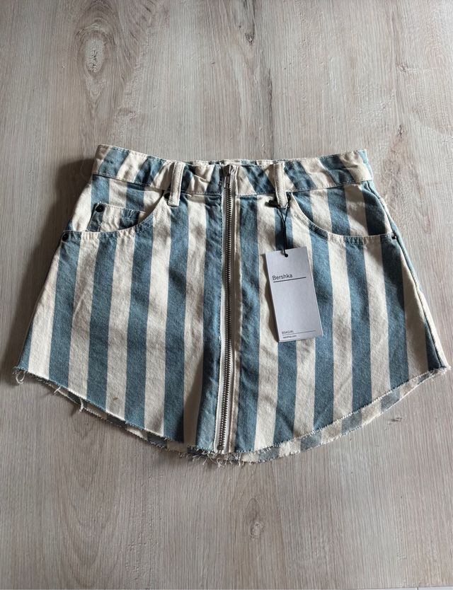 Minigonna Bershka a righe – simil jeans, taglia 34