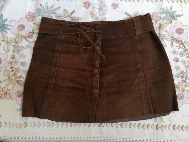 Minigonna vintage anni 70 camoscio. Giro vita cm 69 /70, giro coscia cm 98.lunghezza cm 30.