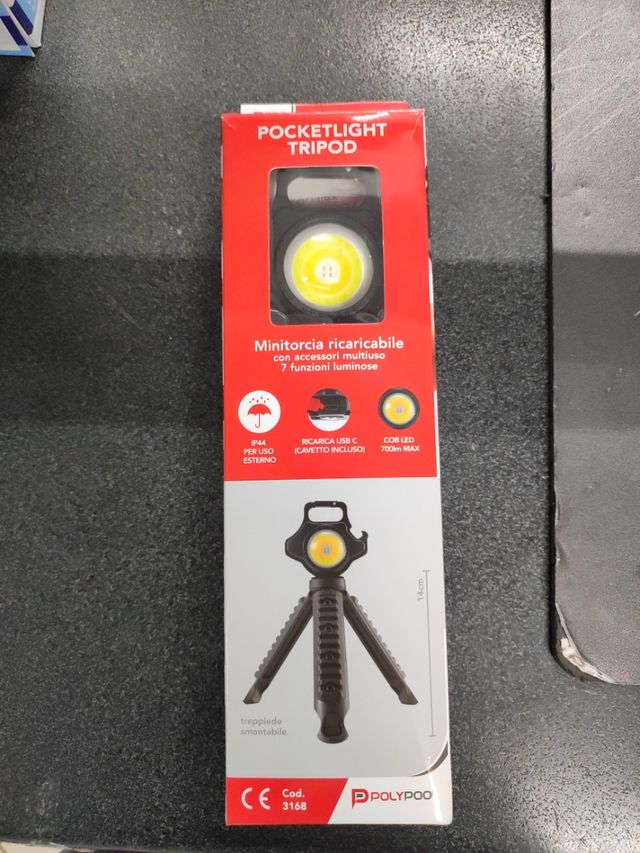 MiniTorcia ricaricabile multifunzione con accessori multiuso a led 7 funzioni luminose misura altezza cm.14