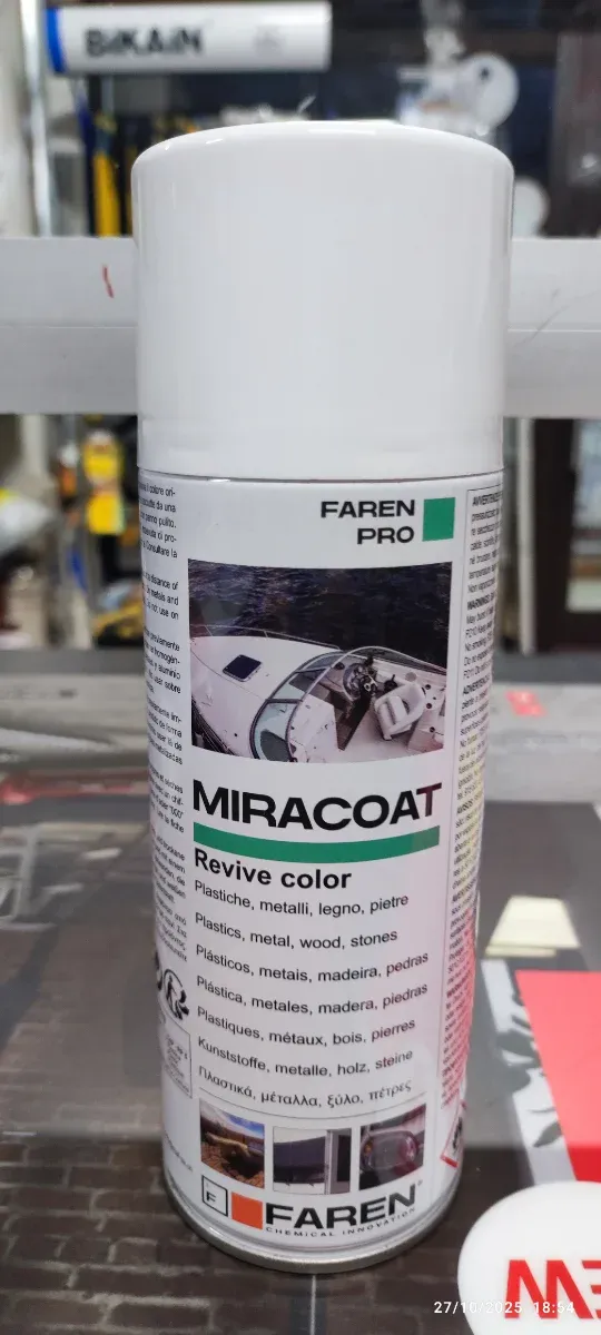 Spray Miracoat per ravvivare il colore su diverse superfici. - Adatto per plastiche, metalli, legno e pietre. - Formula specifica per il restauro del colore.