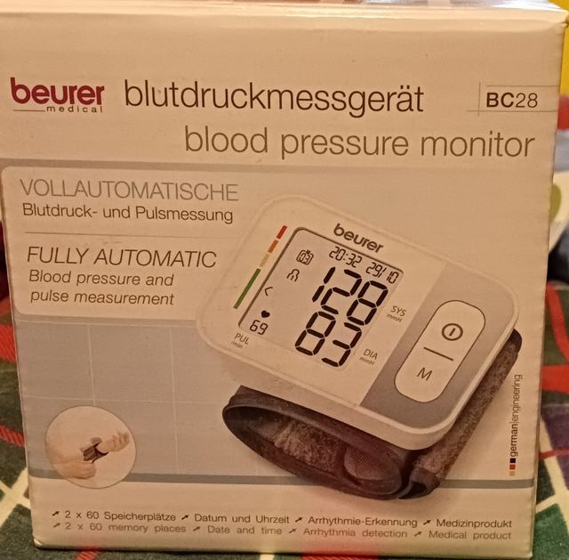Dettagli del prodottoUsato pochissimo, misurazione automatica della pressione e del battito cardiaco, 60 posizioni di memoria, data e ora, rilevazione aritmia, prodotto medicale, circonferenza polso cm.14-19,5, BC28 OMS