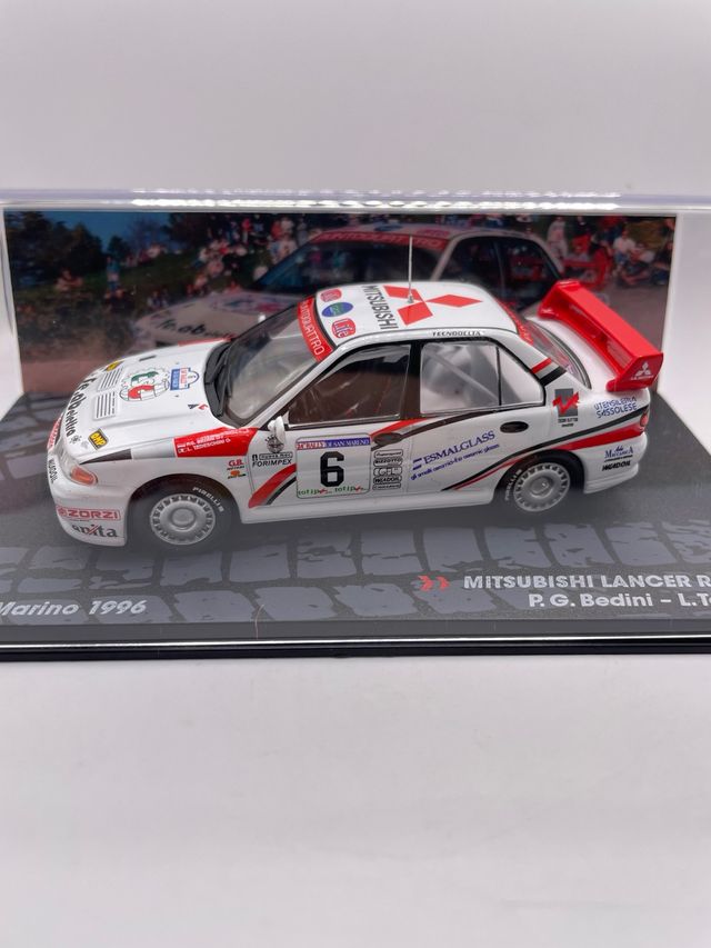 Dettagli del prodottoModellino della Mitsubishi Lancer Evo III che ha partecipato al Rally San Marino nel 1996.