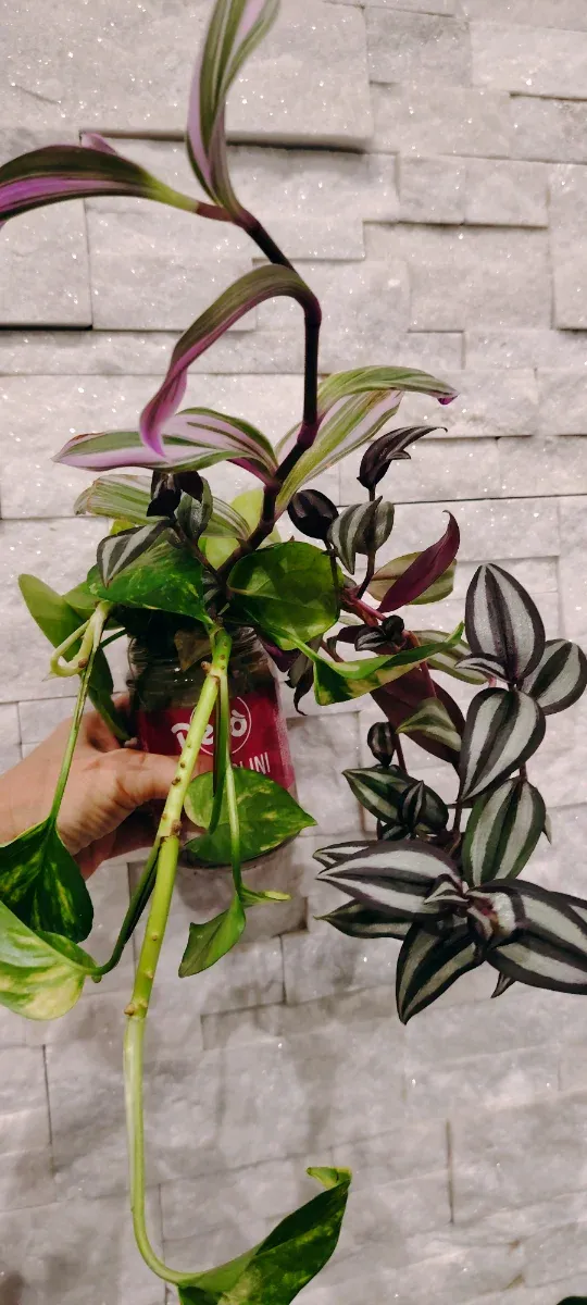Piante miste da interno, ideali per decorare la casa. - Pianta con foglie verdi e striature rosa. - Pianta con foglie verdi e bianche. - Pianta con foglie verdi e viola.