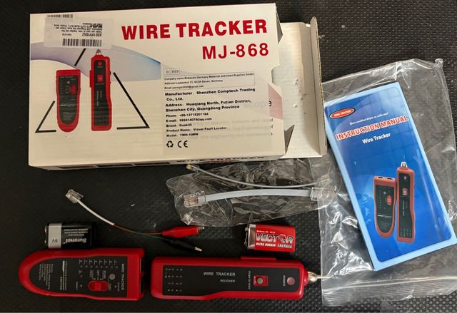 Vendo cerca cavi, in ottime condizioni. - Include un trasmettitore e un ricevitore. - Perfetto per individuare cavi. -tester LAN incluse le due batterie