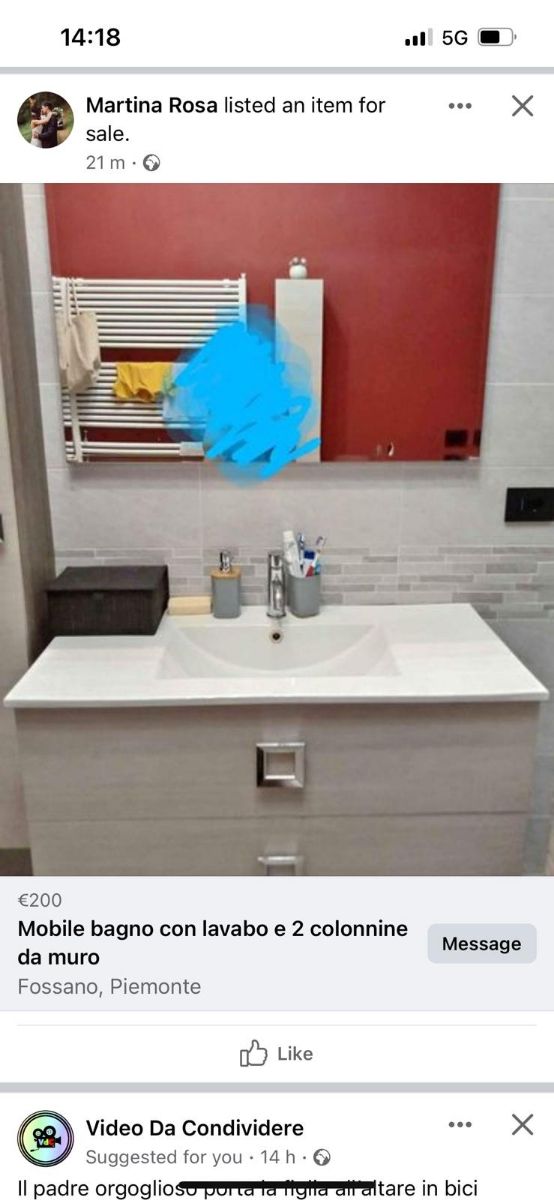 mobile bagno con lavabo, 2 cassettoni e 2 colonnine da muro