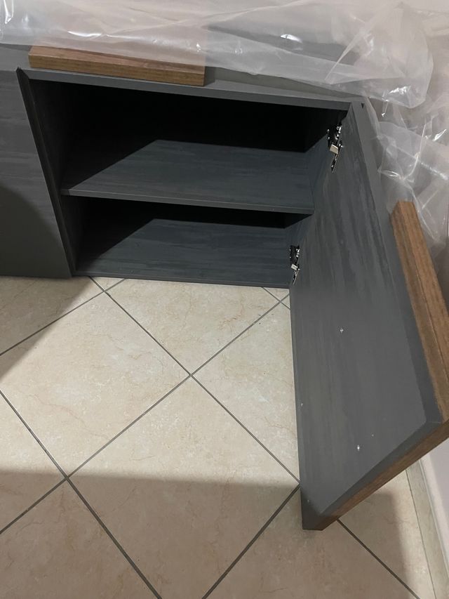 181×44×59 titanio/mercure solo montato dal mobilificio a causa di errata ordinazione base parete attrezzata/ mobile porta tv nuovo e mai utilizzato (prezzo di listino: 221 €).