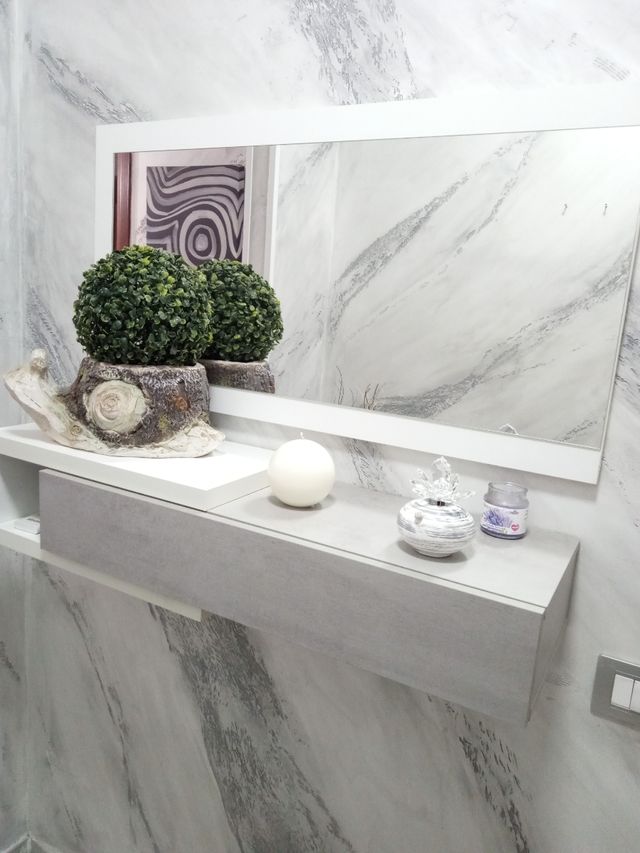 Dettagli del prodottomobile da entrata con cassetto e specchio come nuovo bianco e grigio specchio altezza 51 larghezza 96 Misure del prodotto