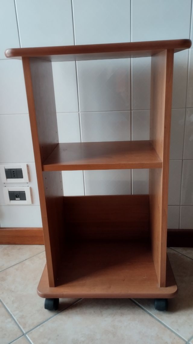 Mobiletto in noce porta TV con 4 ruote e 1 ripiano. Misura 45,5 x 35 x 80 h
