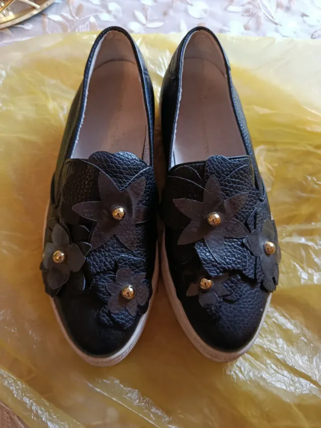 Mocassini donna neri con fiori