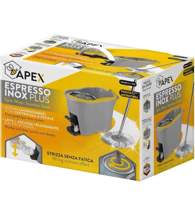 Dettagli del prodottoSistema lavapavimenti a centrifuga completo di secchio con pedale, strizzatore in acciaio inox, manico e fiocco microfibra sfilabile e lavabile. Lava, spolvera e asciuga velocemente ed in profondità. Strizza il fiocco senza fatica e senza bagnarsi le mani. Il pedale permette inoltre di regolare il livello di asciugatura del fiocco.