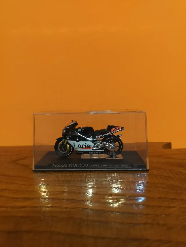 Dettagli del prodottoModellino da collezione della Honda NSR500 del 2002, guidata da Loris Capirossi.