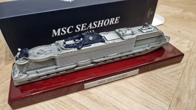 Dettagli del prodottoModellino da collezione della nave MSC Seashore, fedele riproduzione in scala.