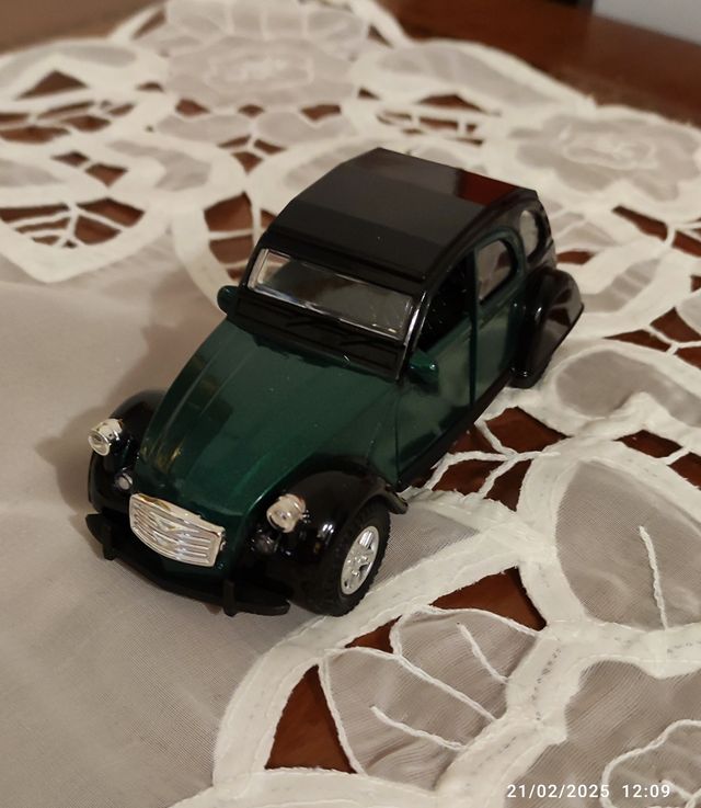 Modello auto da collezione Citroen 2cv charleston in lega di metallo con azione a ritorno e porte apribili scala 1/32. Anno 1982