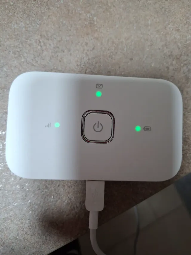 Modem portatile per connessione internet. - Indicatore di segnale Wi-Fi. - Indicatore di stato batteria. - Indicatore di messaggi. - Pulsante di accensione/spegnimento.