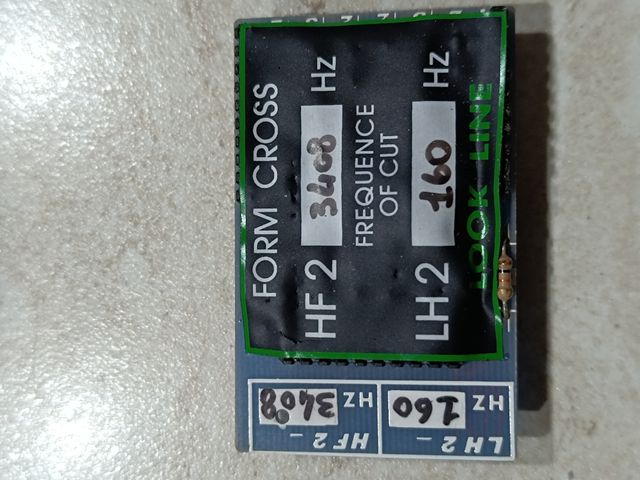 Modulo crossover Form Cross della Look Line. Presenta le seguenti impostazioni: - Frequenza di taglio HF2: 3408 Hz - Frequenza di taglio LH2: 160 Hz
