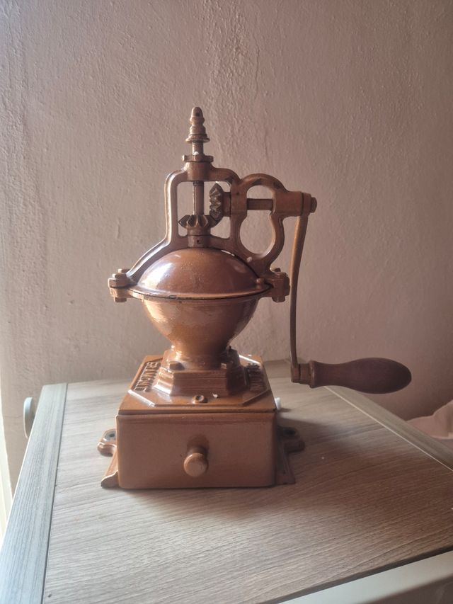Dettagli del prodottoImpeccabile e totalmente funzionale. Il marchio Mutzig-Framont era un'azienda classica molto nota di macinini per caffè. Fondata in Alsazia nel 1871 e dedicata alla produzione di strumenti e macinini per caffè, era tedesca fino al 1918, anno in cui divenne francese dopo che l'Alsazia entrò a far parte della Francia dopo la Prima Guerra Mondiale. Il marchio scomparve nel 1932. Questo è della fine del XIX secolo ma è in perfetto stato e funzionale, infatti, uno dei migliori che ho avuto. Abbastanza pesante, il che dà un'idea della qualità dei materiali. Un bel colore giallo senape. Dimensioni: 21 cm L x 19,5 cm P x 31,5 cm A con manico. La descrizione è stata tradotta automaticamente.