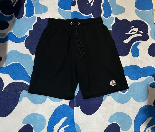 Shorts Moncler neri con logo. - Vita elasticizzata con coulisse. - Logo Moncler sul fondo. -veste S