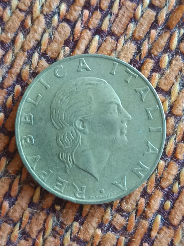 Moneta commemorativa da 200 lire italiane di Genova 1992. - Design della Repubblica Italiana. - Incisione di M. Vallucci.