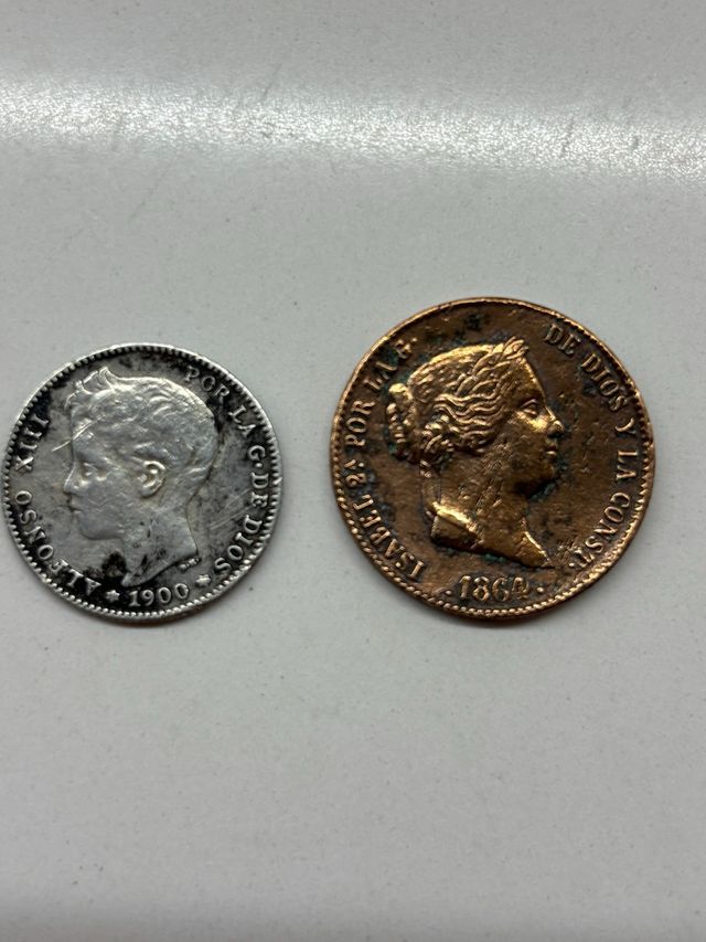 Monete di Alfonso XIII e Isabella II (1900, 1869)