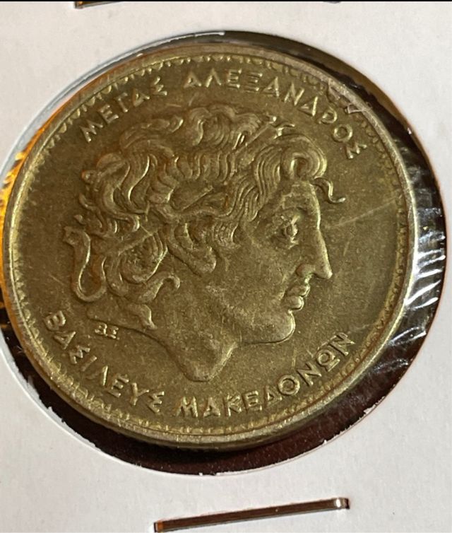 Dettagli del prodottoMoneda commemorative dell'antica Grecia, con l'effigie di Alessandro Magno.