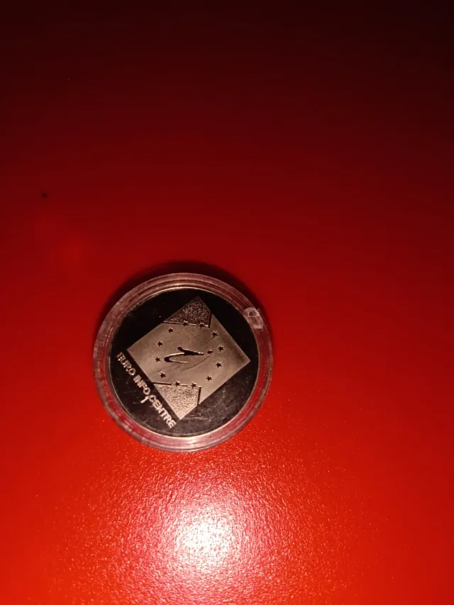 Dettagli del prodottoMoneda commemorativa del Euro Info Centre. - Design con stelle e un simbolo centrale. - Iscrizione EURO INFO CENTRE sul bordo. La descrizione è stata tradotta automaticamente.