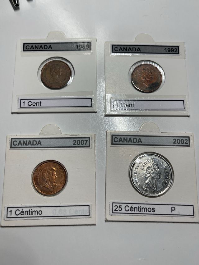 Dettagli del prodottoLotto di quattro monete canadesi.