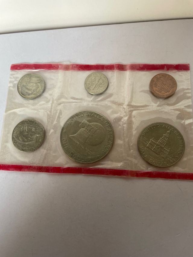 Dettagli del prodottoSet di monete statunitensi presentate nella loro confezione originale. Include varie denominazioni di monete americane. Le monete sono sigillate in plastica trasparente. La descrizione è stata tradotta automaticamente.