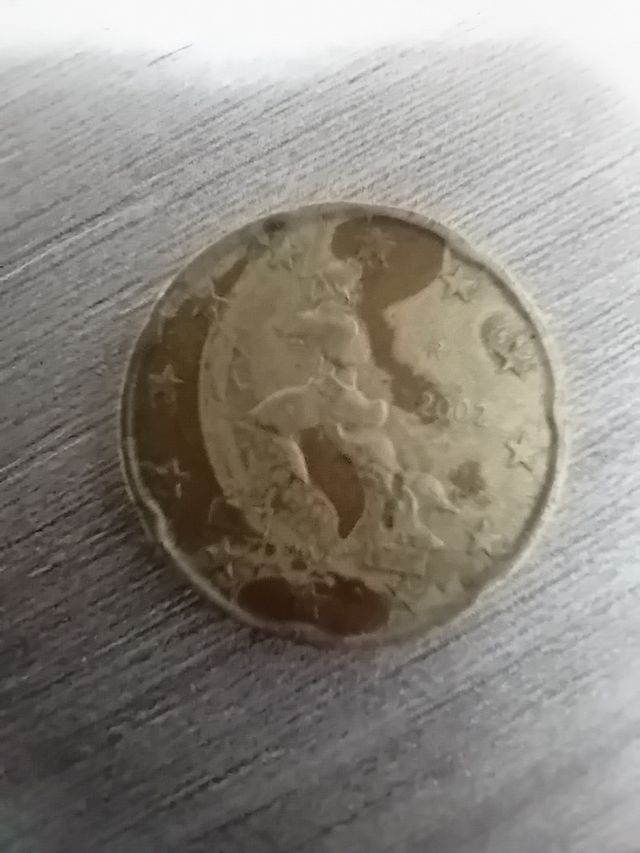 Moneta Da 20 centesimi Italiana Del 2002 con Errore di Conio tracce di rame