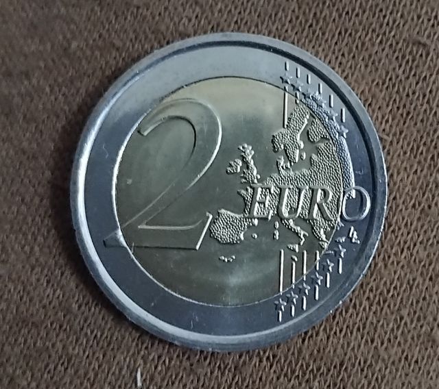 - Rovescio: mappa dell'Europa con il valore 2 EURO.