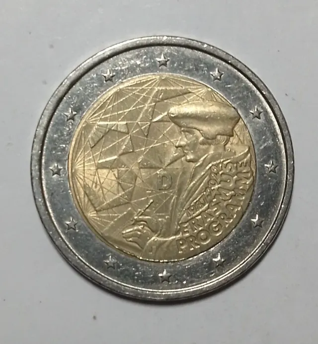 Dettagli del prodottoMoneta commemorativa da 2 euro della Germania, anno 2022. Raffigura il programma Erasmus.