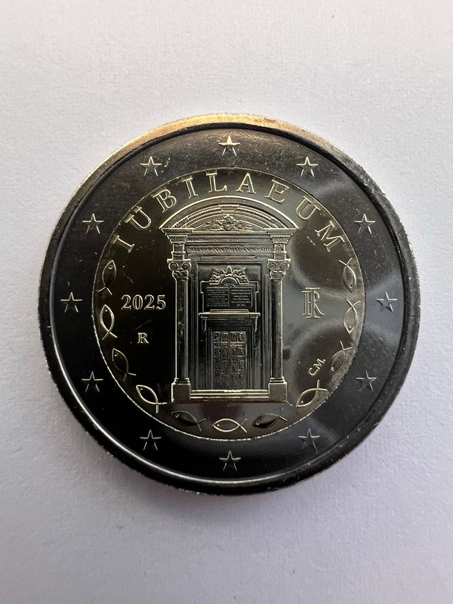 Moneda commemorativa da 2 Euros. - Anno: 2025 - Tema: Giubileo - Dritto: Porta Santa - Incisore: C.M.