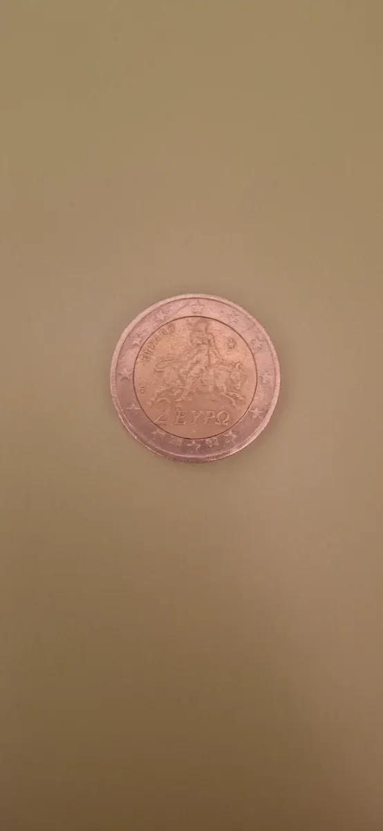 Moneta da 2 Euro. - Dritto: raffigurazione di un personaggio mitologico. - Rovescio: valore nominale e mappa dell'Europa. - Anno: 2004.
