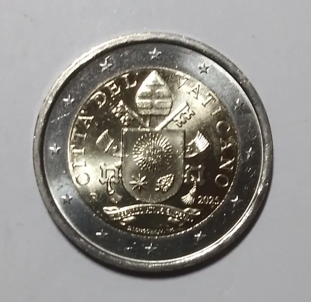 Moneta da 2 euro commemorativa del Vaticano, anno 2025. - Dritto: Stemma del Vaticano. - Anno di conio: 2025. - Valore nominale: 2 Euro.