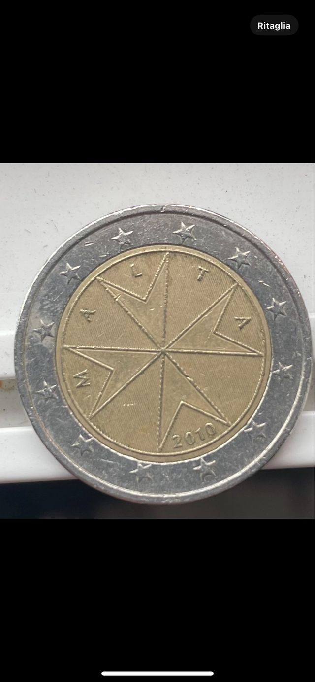 Moneta da 2 euro di Malta, - In buone condizioni. - Mostra la croce di Malta al centro. Stato : Malta 🇲🇹 Anno: 2010