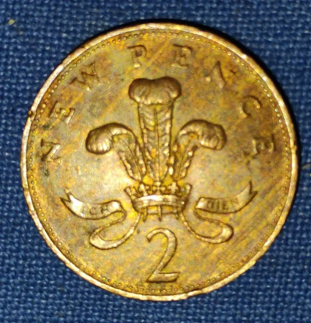 Moneta da 2 Pence del 1978. - Dritto: Stemma del Galles con corona e piume di Principe di Galles. - Rovescio: Valore nominale 2 e iscrizione TWO PEN