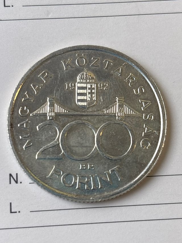 Dettagli del prodottoMoneta commemorativa da 200 fiorini della Repubblica d'Ungheria, coniata nel 1992.