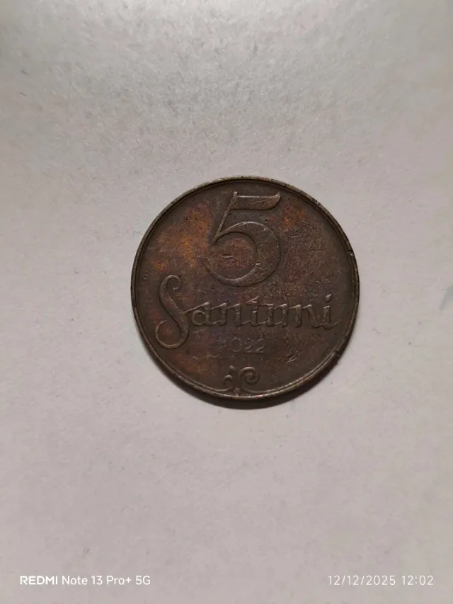 Moneta da 5 Santimi coniata nel 1922. - Valore nominale: 5 Santimi - Anno di coniazione: 1922